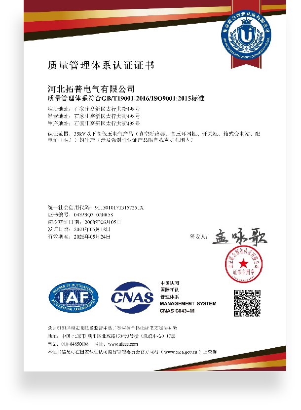 公司技術(shù)力量雄厚,檢測設(shè)備精良,項目經(jīng)驗豐富,始終遵循“高起點、高科技、高質(zhì)量”的戰(zhàn)略方針,堅持“顧客至上、優(yōu)質(zhì)高效、不斷創(chuàng)新、持續(xù)改進(jìn)”的質(zhì)量方針,生產(chǎn)過程全面實施通過認(rèn)證的ISO9000質(zhì)量管理體系。經(jīng)過多年技術(shù)研發(fā)及專家指導(dǎo),生產(chǎn)工藝不斷完善,生產(chǎn)規(guī)模和銷售市場日益擴大,配備了裝配及自動化生產(chǎn)線的生產(chǎn)車間。公司主營業(yè)務(wù):高低壓配電柜、真空斷路器、智能配電終端、絕緣子、電纜卡具、箱式變電器、電纜支架、重合器、負(fù)荷開關(guān)的生產(chǎn)、銷售。河北拓普電氣股份有限公司本著以質(zhì)量求生存,以信譽創(chuàng)品牌的企業(yè)宗旨,努力超越,追求卓越,為客戶提供配電系統(tǒng)可靠的解決方案,竭誠歡迎廣大客戶參觀考察洽談業(yè)務(wù),真誠合作,共同創(chuàng)造燦爛輝煌的明天。
